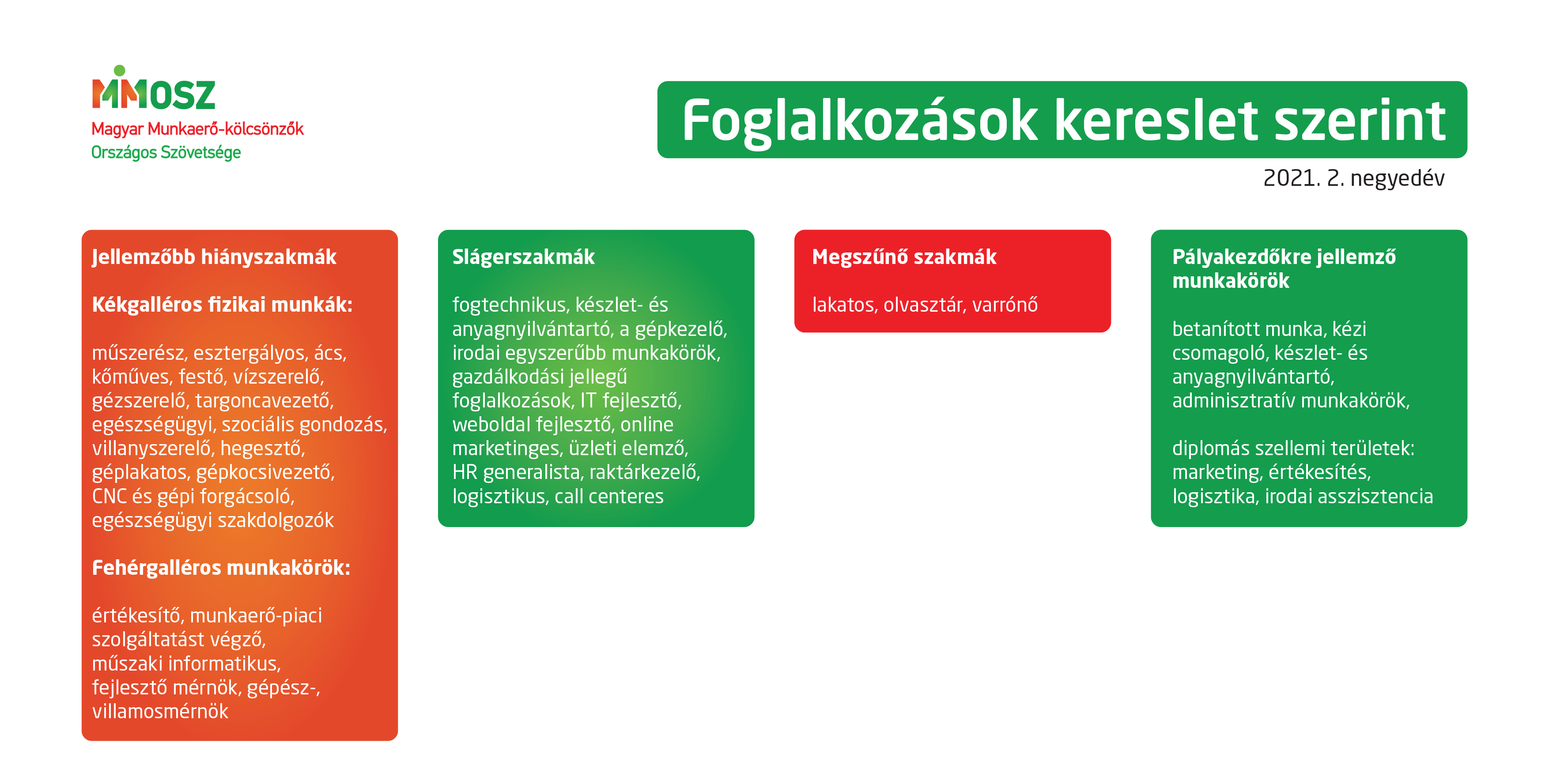 A minőségi munkaerőállomány kiválasztása, képzése és megtartása olyan versenyelőnnyé vált, hogy a HR-szolgáltatóknak egyre nagyobb szerepe, feladata és felelőssége lett a cégek életében. Az atipikus foglalkoztatás rugalmas, projektszemléletű, garanciális elemekkel kiegészített, ami a jelen helyzetben különösen fontos szempont, ezért előnyben részesítik a munkaadók. Szinte minden szektorban dinamikusan érezhető az élénkülés, úgy a szakképzetlen, mint a szakképzett fizikai állomány felvételére vonatkozóan. A fizikai munkák iránt csökkent a munkavállalói kereslet, miközben már megfordult a trend: jobban megfizetik, mint a „fehérgalléros” kollégáikat. A diplomás és nem diplomás szellemi tevékenységet végzők tekintetében nem mutatkozik jelentősebb változás, mert a home office lehetőségei miatt egy új, rugalmasabb és mindkét fél által kedveltebb, működőképesebb foglalkoztatási forma került jelentős volumenben kialakításra, ezért ezekben a munkakörökben kevéssé volt jellemző a munkahelyek megszűnése.